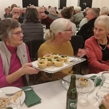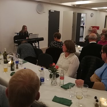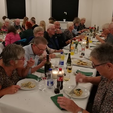 Masser af tarteletter til alle, så rigeligt at der stadig var lidt tilbage på fadene. Og da der var gumlet af munden sørgede Vibeke Aagaard for Underholdningsdelen.
